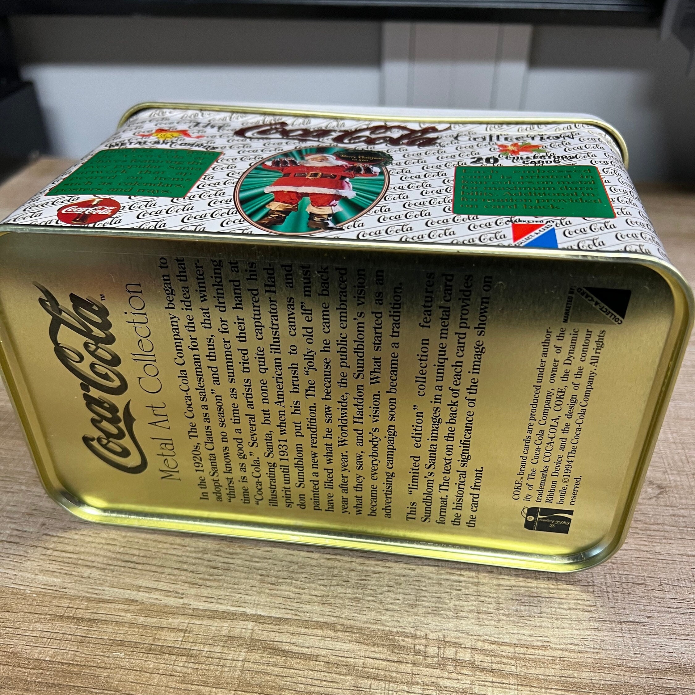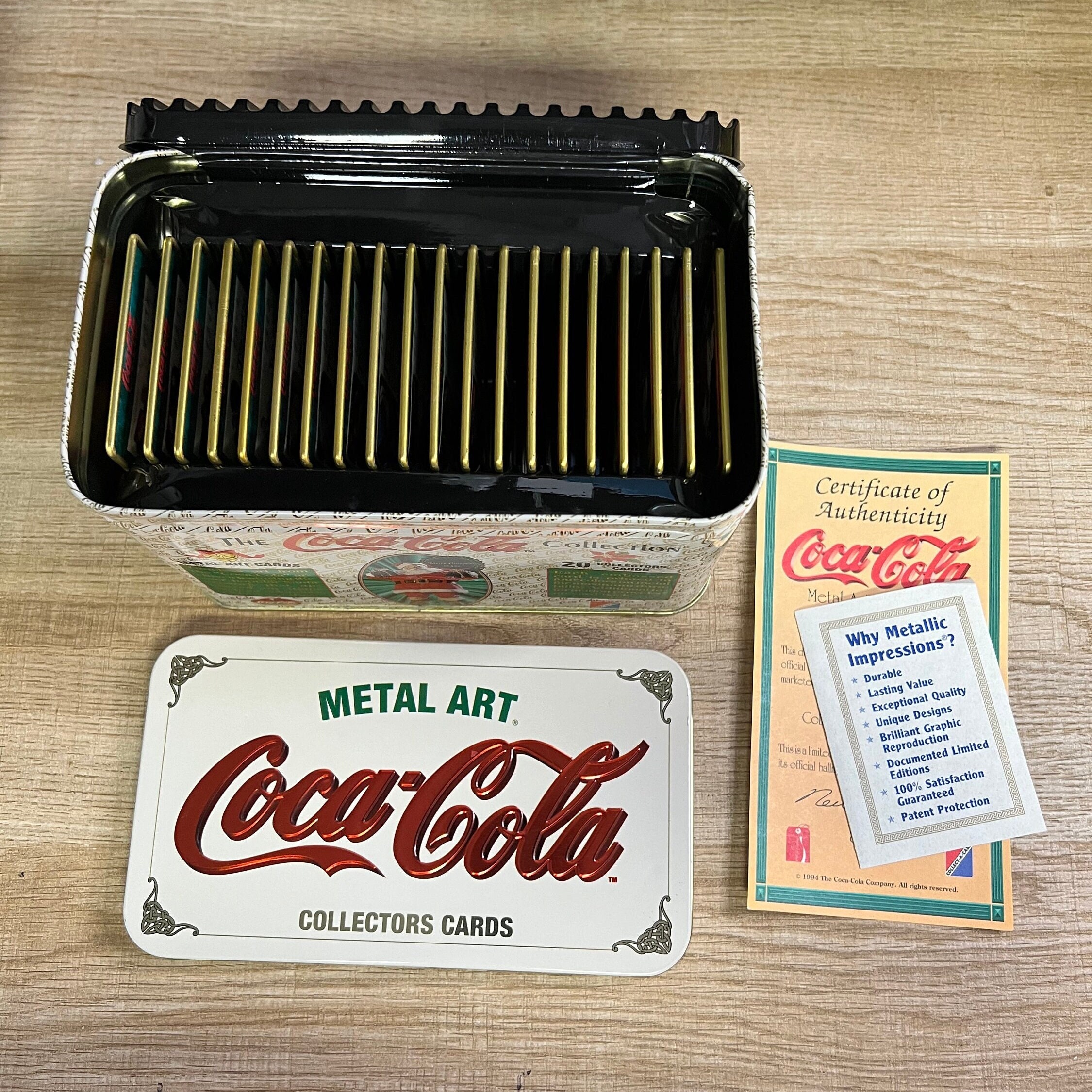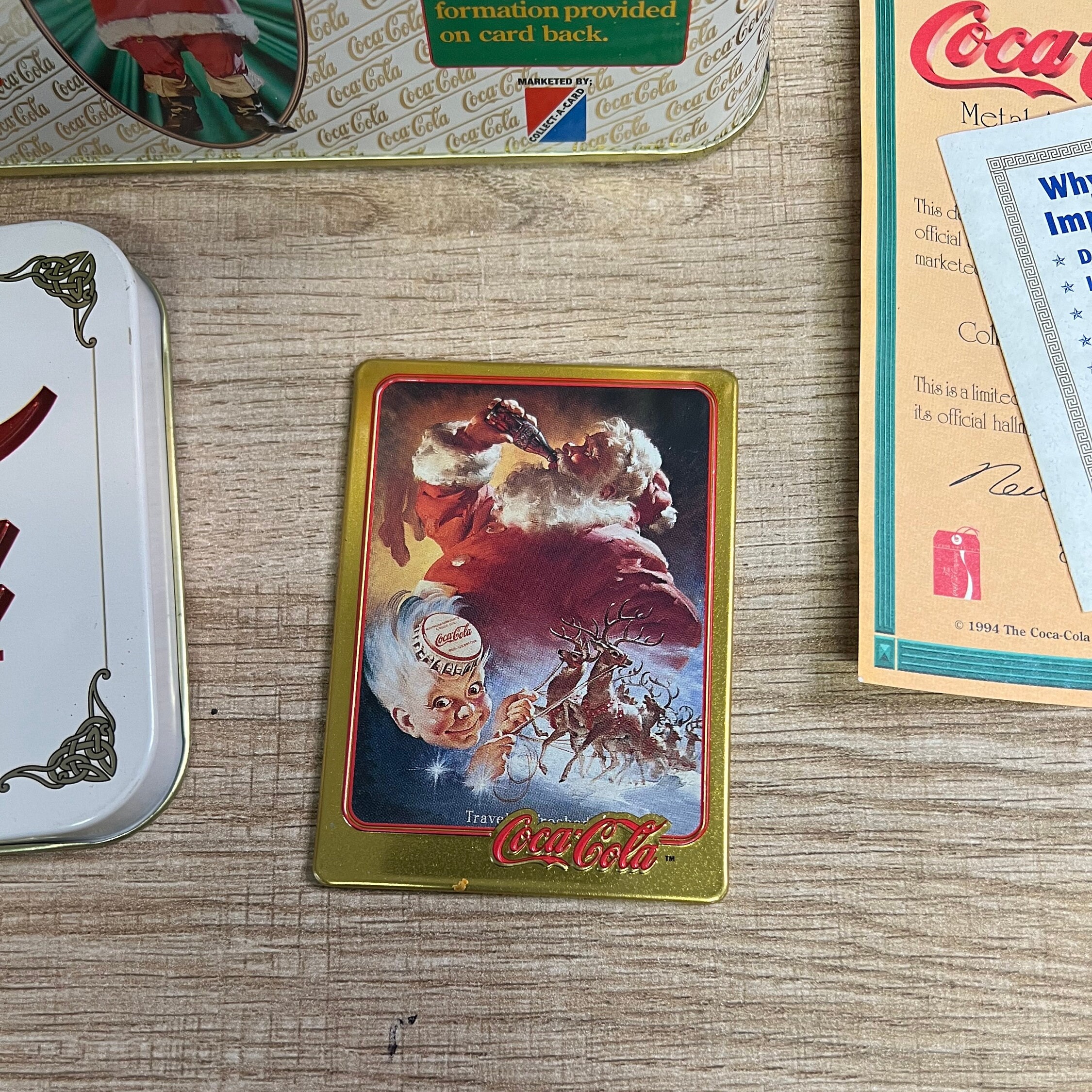 This Vintage Coca-Cola Santa Metal Art Trading Card Collector’s box is perfect for the Coca-Cola or vintage advertisement collector! Each of the 20 metal trading cards are double-sided, featuring a vintage Christmas Coca-Cola advertisement illustration on one side and a brief history of the ad on the other.